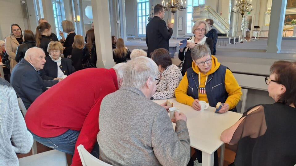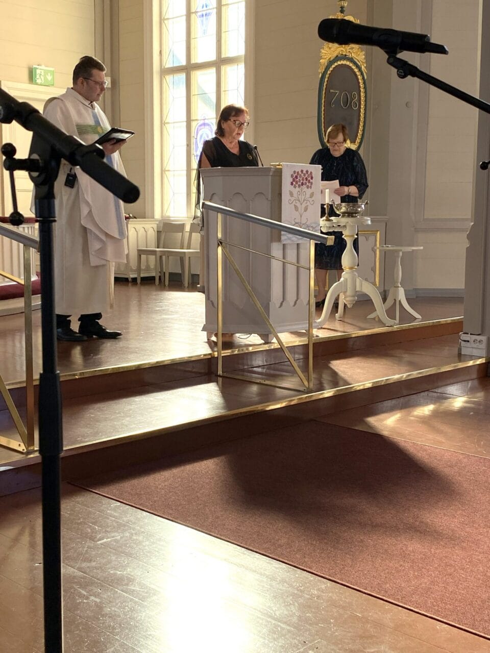 Yhdistyksemme jäseniä oli palvelemassa, toivottamassa tervetulleiksi, kolehtia kantamassa, lukemassa päivän tekstit ja rukouksen, sekä kahvitarjoilusta vastaten. Tekstin lukijoina Riitta Laasonen ja Raija Ypyä-Saarenpää.