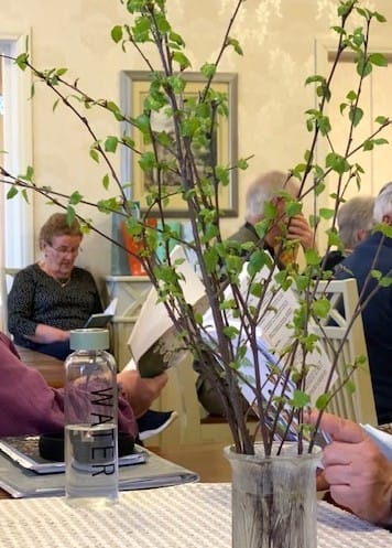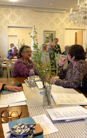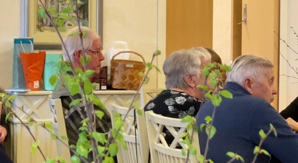 Kevätkausi päätettiin kahvitilaisuuksien osalta 14.4 ja pappilan sali täyttyi iloisesta puheensorinasta alkukehvittelun aikana. Kaikki eivät ihan mahtuneet ”pääsaliin” mutta ”sivuhuone” antaa lisätilaa ja sielläkin oli muutamia henkilöitä.