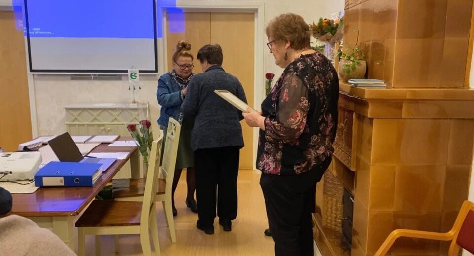 Muistettiin ja onniteltiin myös piirin toiminnanjohtajaa Taina Alankoa hänen tämän vuoden aikana olleesta merkkipäivästä ja siitä mittavasta työstä mitä hän tekee yhdistysten ja piirin hyväksi, onnea Taina!